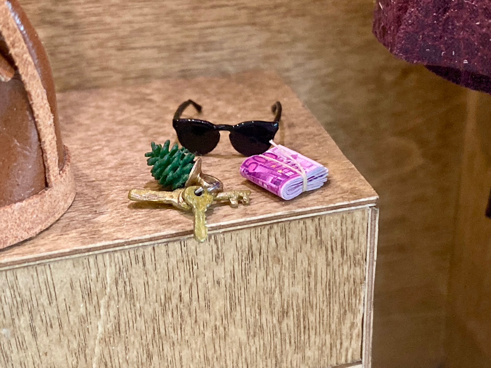 I ordered some laser-cut leaves lare tropical leave) from Yenmodels.be knowing that they will not be large enough for 1:12. But then - we all know how to make things work :-) Copied and enlarged them and cut them out with the nail scissors. When coloring them, best not use high gloss...